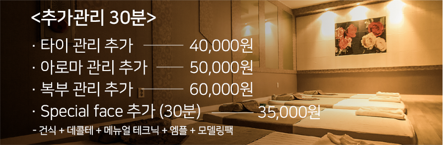 | 전신 타이테라피 + 집중 복부 관리 | 140,000원 | 130,000원 |